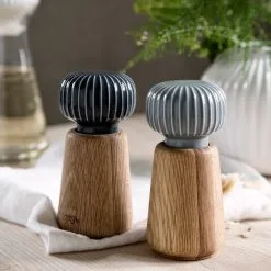 Hammershø Spice Mill fra Kähler. Spice dit bord med denne klassiske kryddermølle fra Hammershø-serien, hvor keramik og træ mødes i en spændende blanding. Ribbet mønster på toppen giver ikke kun en tidløs og eksklusiv følelse, det giver også et godt greb. Kombiner de forskellige farver for at se en forskel på dit salt- og pebermølle. Designet af Hans Christian Bauer.
