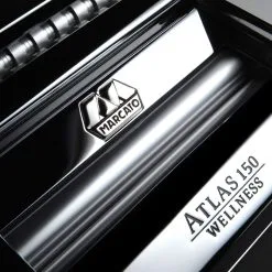 En populær pastamaskine og italiensk design ikon fra Marcato, en maskine som fremstillet hjemmelavet pasta i forskellige former. Pastamaskinen har justerbar tykkelse på lasagnepladerne, fra 0.6 til 4.8 mm. Til maskinen høre også valser til fettuccine (6 mm) og tagliolini (1.5 mm). Max bredde på lasagneplader er 15 cm. Bordfæste til maskinen indgår.