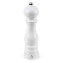 Paris anses for at være flagskibsproduktet af Peugeot -samlingen, når det kommer til møller, som det er tilgængeligt i et stort udvalg af forskellige farver og størrelser. Saltmøllen er lavet af træ med en hvid lakeret overflade og er udstyret med Peugeot ‘s innovative og patenterede U’Vælg slibemekanisme, som giver en perfekt slibning, uanset om du vil have fintmalet eller groft salt. U’Select tilbyder brugeren seks forskellige forudvalgbare slibningsindstillinger, som du nemt kan justere ved at dreje ringen ved bunden af møllen til den ønskede slibestørrelse. U’Select har noget for enhver smag! U’Select har en særlig saltmekanisme bestående af rustfrit stål, der er resistent over for saltkorrosion og er designet til at male madlavningssalt til et jævnt korn. Saltmøllen kan bruges til at male forskellige former for salt, såsom havsalt og rocksalt. Saltet skal være tørt og groft med en diameter på ca. 4 mm. Bemærk, at saltmølle ikke må bruges til at male peber eller andre krydderier, heller ikke fugtigt havsalt, såsom for eksempel Guérande, Ré osv. Fordi dets fugtindhold er så højt, at det vil korrodere møllen. Rengør møllen med en lidt fugtig klud og brug aldrig stærke vaskemidler eller skål sæbe.