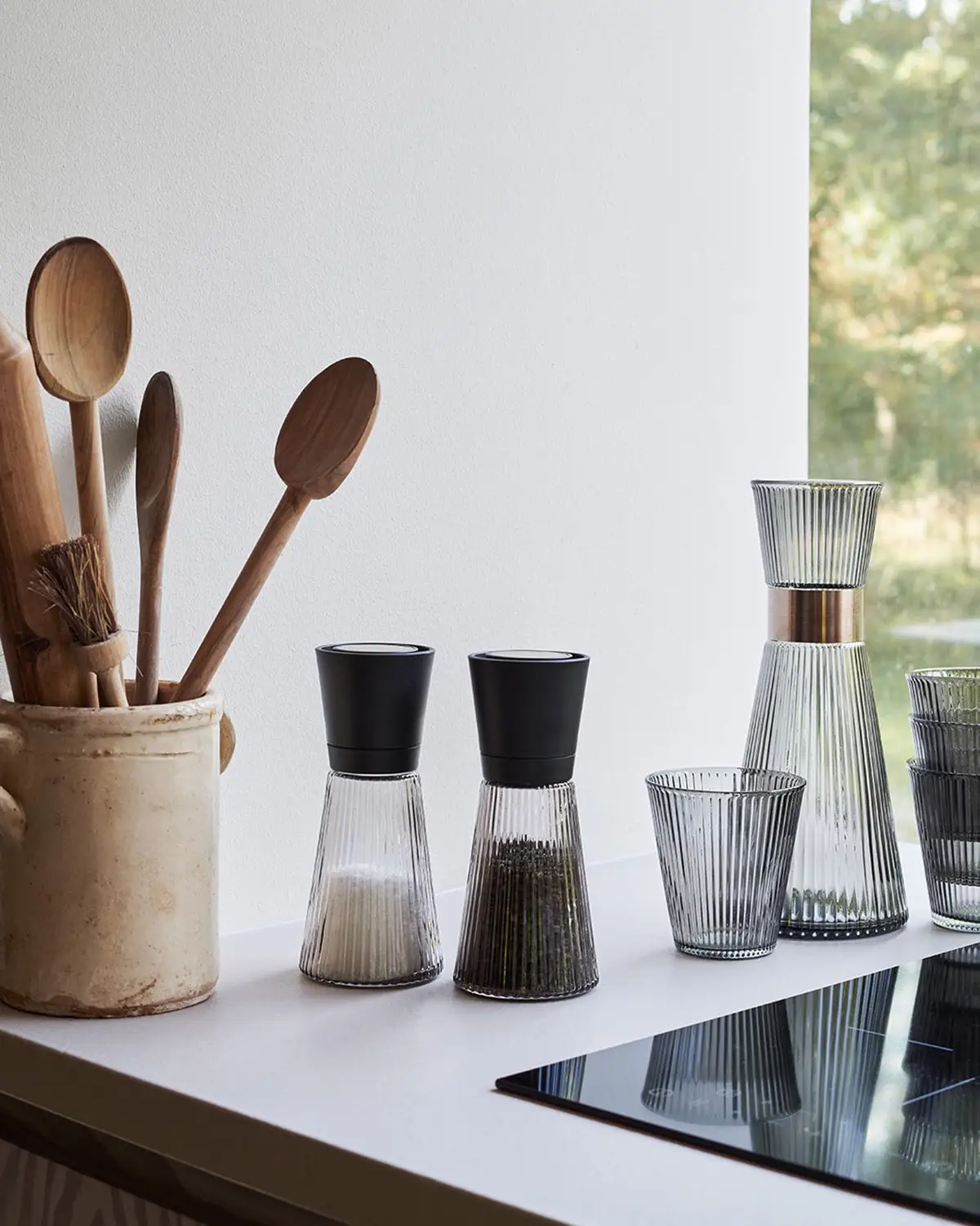 Kværnen fra Rosendahl har et elegant, riflet design i glas perfekt til at placere på bordet og på køkkenbordet. Mix og match med andre dele af kollektionen for at skabe en perfekt kombination.