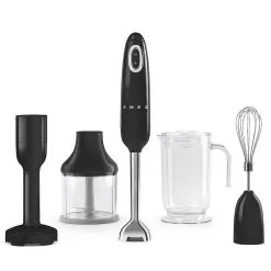 Italiensk Smeg er berømt for sine husholdningsartikler, der kombinerer retro design med moderne teknologi. Retro håndblender er udstyret med en 700 W motor, ergonomisk anti-sliphåndtag og rustfrit stålblad med flowblend-system. Vælg mellem tre hastighedsvalg og brug de inkluderede tilbehør til for eksempel hugge grøntsager og frugt, klem kartofler, whisk sauce eller bland din yndlings smoothie. Leveret glas kan med volumenkapacitet på 1,4 liter og låg. 700 W MOTOR POWER 3 Hastighedsindstillinger Ergonomisk Anti-sliphåndtag Rustfrit stålblad med Flowblend System Komplet med: 1 Chopper, 1 Pisk, 1 Masher, 1,4 l Graduated Baker